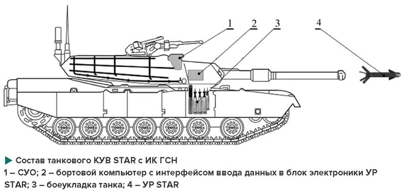 СУО комплекса управляемого вооружения STAR состоит из прицела наводчика с лазерным дальномером и GPS приемника, установленного на танке. Для способности внедрения управляемой ракеты STAR в бортовик танка вводится новое соответственное программное обеспечение. Танковый выстрел STAR содержит управляемую ракету и гильзу.