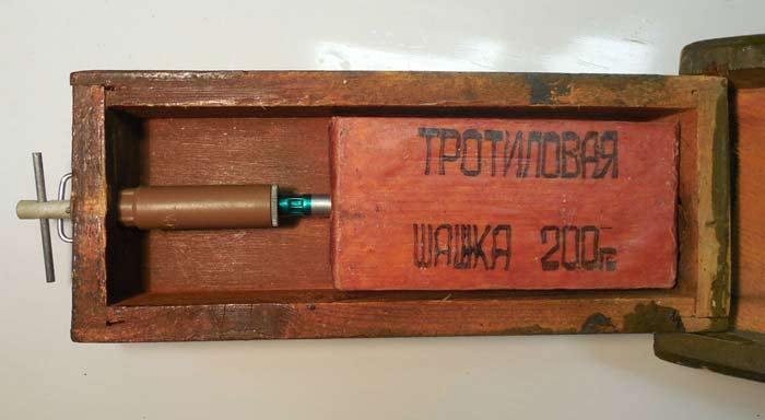 - вложить в корпус 200-г тротиловую шашку запальным гнездом в сторону фронтальной стены корпуса;