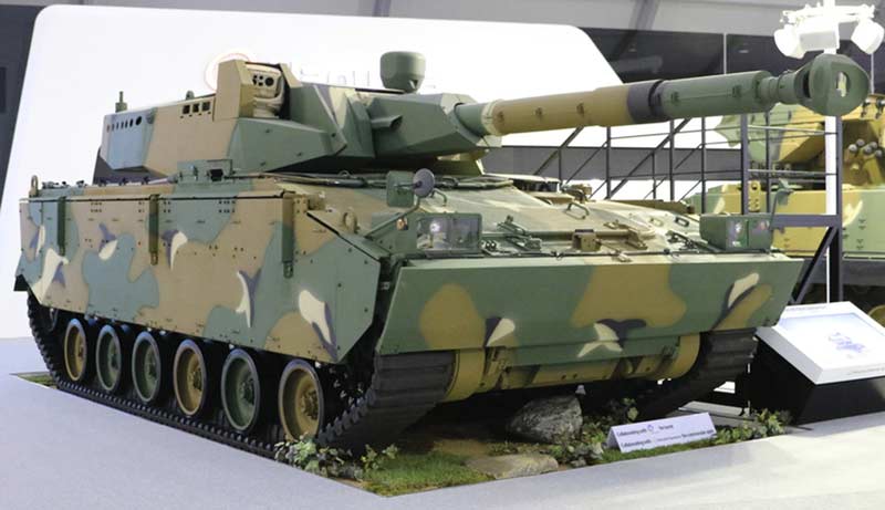 Сотрудничество Hanwha Defense с бельгийской компанией Cockerill (в предстоящем она вошла в состав компании СМ1 Defence) привело к разработке ряда проектов боевых машин на базе БМП K200A1 и K21, нацеленных на экспорт. Рост потребности рынка в относительно дешевеньких (по сопоставлению с главными боевыми танками) легких боевых машинах вызвал возникновение проекта среднего танка на базе K21, вооруженного 105- либо 120-мм орудием низкой баллистики в башне Cockerill CT-CV. В первый раз широкой общественности опытнейший эталон танка K21-105 был показан на интернациональной выставке вооружений IDEX-2013 в Абу-Даби.