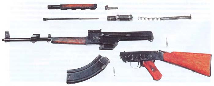 Новое общее орудие пехоты - автомат, рождался вроде бы в центре треугольника «автоматическая винтовка — пистолет-пулемёт — ручной пулемёт», но он не был должен поменять все эти типы орудия. Существенное отличие русских работ по созданию новых комплексов «патрон-оружие» заключалось в том, что задание было выдано сразу на три типа орудия, которые составили бы систему стрелкового вооружения под унифицированный промежный патрон на уровне взвода. На смену пистолета-пулемёта создавался автомат, на смену магазинного карабина — самозарядный карабин, на смену ручного пулемёта под винтовочный патрон — лёгкий ручной пулемёт, переносимый вкупе с боекомплектом и обслуживаемый в бою одним бойцом. Длилась доработка и самого патрона.