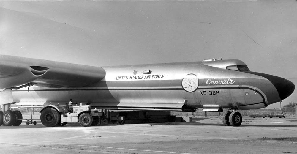 Третьим элементом было летное испытание реактора. Посреди 1952 года Convair получила договор на модификацию 2-ух самолетов Convair B-36: один для наземных испытаний, другой для летных испытаний. 1-ый измененный Convair B-36 именовался Nuclear Test Aircraft (NTA), B-36H-20-CF (серийный номер 51-5712), который был поврежден во время торнадо на авиабазе Карсуэлл 1 сентября 1952 года. Этот самолет был переименован в XB-36H, потом в NB-36H и был изменен, чтоб нести 3-мегаваттный атомный реактор с воздушным остыванием в бомбоотсеке. Реактор, получивший заглавие Aircraft Shield Test Reactor (ASTR), был в рабочем состоянии, но не приводил в действие самолет. Вода, действующая как замедлитель и теплоноситель, прокачивалась через активную зону реактора, а потом в теплообменники "вода-воздух" для теплоотвода в атмосферу. Его единственная цель состояла в том, чтоб изучить воздействие радиации на системы самолета. Для защиты летного экипажа носовая часть самолета была изменена и включала 12-тонный свинцово-резиновый щит и девять заполненных водой защитных баков в фюзеляже для поглощения хоть какого выходящего излучения. Стандартное лобовое стекло было заменено на акриловое стекло шириной 15 см. Количество свинца и водяной защиты было переменным. Потом измерения приобретенных уровней излучения сравнивались с расчетными уровнями, чтоб сделать лучше возможность разработки хорошей защиты с наименьшим весом для бомбардировщиков с ядерными движками.