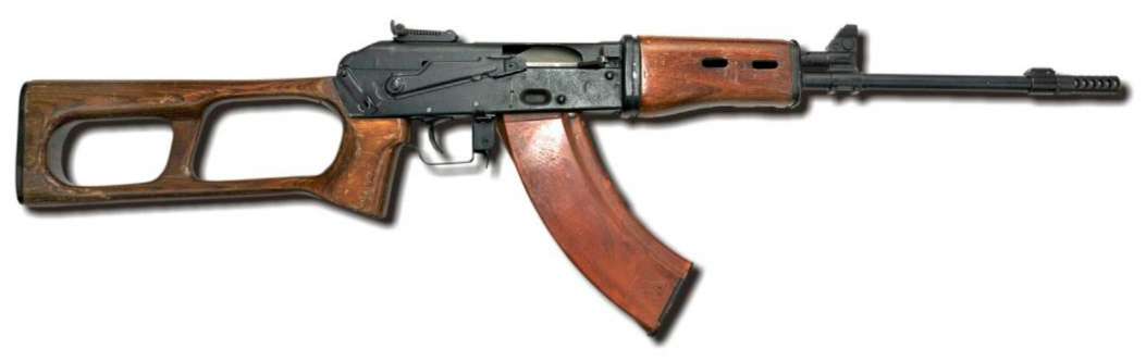 5,45-мм автомат АЛ-2 конструкции Ю.К.Александрова и Р.С.Поваренкина, экспериментальный эталон 1960-70-х гг . Вместимость магазина 30 патронов, прицельная дальность 1000 м |
