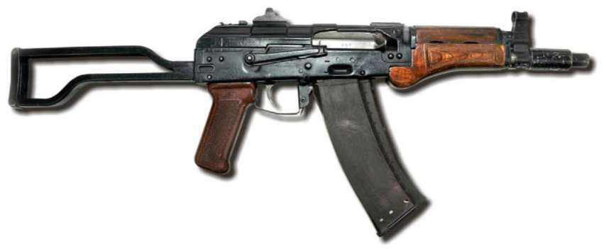 Автомат АЛ-2. Конструкторы Ю.К.Александров и Р.С.Поваренкин, 1960-70-е гг. Эталон из новейшей серии легких автоматов, разработанных вначале под патрон 7,62x39, а в предстоящем под патрон 5,45x39. Имеет традиционную схему автоматики с боковым газовым движком, размещенную в сборке «bull-pup». В конструкции автомата использовано ограничение хода рамы в последнем заднем положении о фронтальный вкладыш ствольной коробки. Это позволило (за счет упругости ее стен) несколько понизить воздействие удара подвижных частей в последнем заднем положении на наводку орудия. Размещение возвратимой пружины с правой стороны затворной рамы обеспечило понижение высоты ствольной коробки. Газовая камера автомата (закрытого типа, вооружена двухпозиционным газовым регулятором) служит сразу основанием прицела. Детали ударно-спускового механизма стопроцентно сделаны штамповкой из листа. В предстоящем, в 1970-е годы, в работе над автоматами серии АЛ было опробовано внедрение поступательного курка и схема работы со равновесной автоматикой.