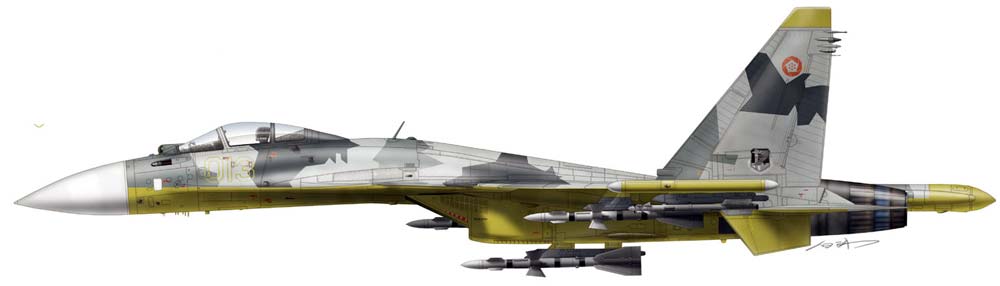 Навигационный комплекс самолета Су-35 включает инерциальную курсовую систему, радиотехнические системы далекой и ближней навигации. На истребителе Су-37 установлена лазерная курсовертикаль и приемник сателлитной навигационной системы. Комплекс обороны включает оптические сенсоры предупреждения об атакующих ракетах противника, станцию радиотехнической разведки последнего поколения, активные системы угнетения, работающие в оптическом и радиолокационных спектрах, также средства постановки пассивных радиолокационных и ИК-помех. Кабина самолета Су-35 имеет всеохватывающую систему индикации, в состав которой заходит три монохромных функциональных монитора на ЭЛТ, снабженные клавиатурой. Самолет Су-37 имеет новое информационно-управляющее поле кабины летчика с 4-мя крупноформатными жидкокристаллическими цветными функциональными индикаторами и широкоугольным индикатором па лобовом стекле, В индикаторах применены жидкокристаллические матрицы. Связное оборудование включает радиостанции УКВ и KB спектра, аппаратуру телекодовой защищенной связи, также систему сателлитной связи. ВООРУЖЕНИЕ истребителя Су-37 включает классическую для семейства самолетов «Су» пушку ГШ-301 (30 мм). На 12 узлах наружной подвески может располагаться различное вооружение общей массой до 8000 кг. в том числе: - многообещающие ракеты класса «воздух-воздух» средней дальности РВВ-АЕ с активным радиолокационным самонаведением; - ракеты «воздух-воздух» средней дальности семейства Р-27 с полуактивным радиолокационным либо пассивным ИК-наведением; - высокоманевренные ракеты класса «воздух-воздух» малой дальности Р-73 с ТГС; - высокоскоростные ракеты Х-31А и Х-31П класса «воздух-корабль» и «воздух-РЛС»; - ракеты класса «воздух-поверхность» семейства Х-29; - зажигательные баки, бомбы и бомбовые кассеты калибром 100, 250 и 500 кг (в том числе и боеприпасы с тормозным устройством для внедрения с малых высот). Всего может быть более 70 вариантов наружной подвески. В предстоящем состав вооружения быть может расширен за счет внедрения многообещающих систем орудия класса «воздух-воздух» и «воздух-поверхность».