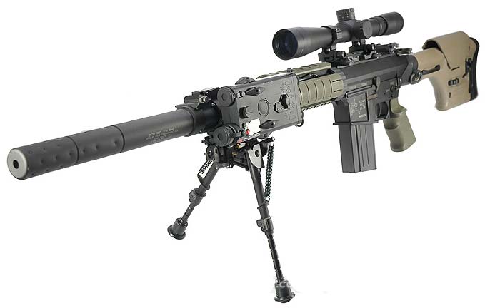 Штатные прицельные приспособления содержат в себе раскладные мушку и целик, установленные на быстросъемных креплениях; диоптрический целик регулируемый по дальности до 600 метров. В дневное время "военные" варианты употребляются с оптическим прицелом компании Leupold переменной кратности 3,5-10X. В черное время суток может быть внедрение разных ночных и ИК прицелов. Все боевые варианты винтовки SR-25 также оснащаются съемной раскладной сошкой компании Harris, быстросъемным глушителем звука выстрела, ремнем для переноски, чехлом и другими необходимыми девайсами.