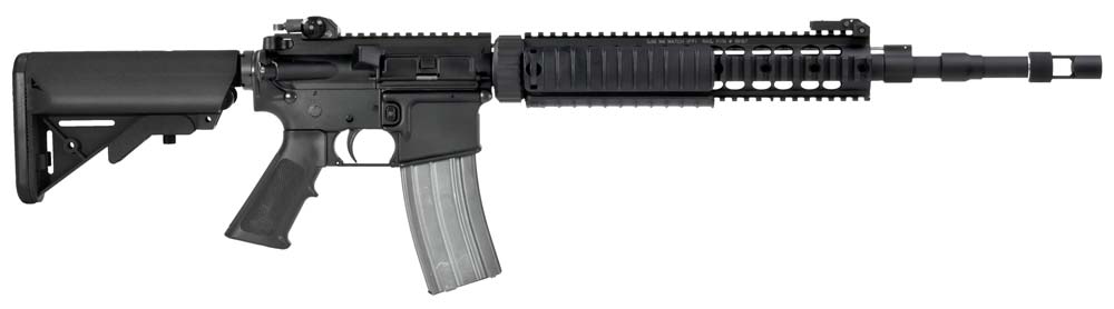 Ствольная коробка и ствольная накладка Что касается ствольной коробки, затворной рамы и поворотного затвора, то здесь речь идёт о стандартных элементах винтовки М16А4. но всё же употребляются детали с особо малыми допусками на изготовка, которые подвергаются доп испытанию завышенным давлением и в заключение проверяются на наличие трещинок на магнитном дефектоскопе. Сверху на ствольной коробке находится планка Пикатини по военному эталону MIL-STD-1913. Благодаря подмене обыкновенной ручки взведения на производимую компанией DPMS Firearms, LLC ручку PRI М84 Gas Buster Charging Handle стала лучше безопасность в воззвании с орудием. Новенькая ручка взведения имеет эргономически усовершенствованный рычаг фиксации с увеличенной на 17% опорной поверхностью под пальцы. Не считая того, эта ручка взведения лучше, чем предыдущая закрывает ствольную коробку и препятствует попаданию в лицо стрелка истекающих пороховых газов и частичек масла. Жёстко соединенная со ствольной коробкой конструкция, именуемая Rail Adapter System Free-Floating Barrel (Long) Model 21318 (длиннющий адаптер с направляющими планками; свободно колеблющийся ствол), а практически -это цевьё, делается компанией Knight's Armament и имеет четыре планки Пикатини военного эталона MIL-STD-1913 длиной по 286 мм любая. Вместе с другими элементами на планку устанавливается передняя антабка под ремень для ношения.