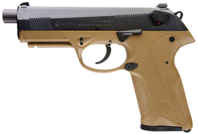 К этим образчикам относится и пистолет Beretta Px4 Special Duty. Компания из Гардоне сказала о его возникновении в 2005 году. Орудие было создано под патроны 9 mm Luger и .40 S&W. С самого начала разработки было установлено, что должно быть вероятным выполнение и под патрон .45 АСР. Уже несколько десятилетий идёт спор: какой калибр лучше – 9 мм либо .45. Значения не имеет: в Соединённых Штатах будет .45. С этим калибром Beretta в первый раз имела дело в пистолете Cougar 8045. Модель вышла на рынок поздно (даже очень), хотя и модельный ряд 8000 имел большой фуррор. Как кажется, Beretta Px4 SD, представляя собой надёжную смесь как из уже оправдавших себя, так и новых решений, имеет отличные перспективы. Выполнение под патрон .45 АСР, соответственное требованиям Командования спецопераций, имеет обозначение SD («Special Duty» – «Специального назначения») и предлагается к продаже в кейсе в цвете «Тёмная земля». Кейс имеет два отделения, которые нужны, чтоб вместить широкий набор принадлежностей. С каждым пистолетом поставляется по три магазина: два – на 10 и один – на девять патронов, все надёжные и многофункциональные – фирменная чёрточка «Беретты». В «нижнем этаже» находятся два рычага для разряжания магазинов – с длинноватым и маленьким толкателем, две сменные спинки ручки (среднего и огромного размера) и, вприбавок, кожух боевой пружины. Всё это довершают приспособление для очистки и неотклонимая цепь безопасности.