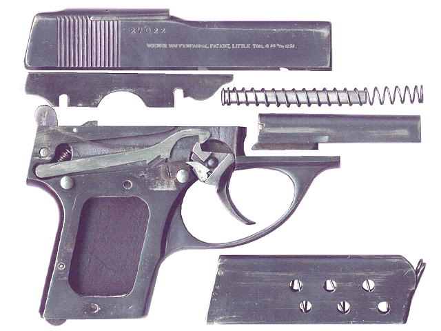 Ввиду острой потребности юный чехословацкой армии в боевом оружии, создание в Пльзене очевидно штатских образцов Томишки было стремительно свёрнуто, и основной их объём, по ориентировочным оценкам до 33 тыщ штук, был сделан на Венской оружейной фабрике. Пистолеты Little Tom относятся к оружию со свободным затвором. Ствол с шестью правыми нарезами соединяется с рамкой креплением типа «ласточкин хвост». Причём от передвижения вспять ствол удерживается только подпирающим его затвором. При отведении затвора в заднее положение ствол движением вспять и ввысь просто снимается с рамки. Затвор, обхватывающий ствол в нижней части, перемещается в одном направляющем пазу с левой стороны рамки. Передняя часть затвора упирается в возвратимую пружину, расположенную на направляющей под стволом. Задним концом возвратимая пружина через утолщение направляющей повлияет на спусковой крючок, возвращая его в фронтальное положение. Ударник сравнимо большой массы удерживается в затворе от выпадания осью размещенного справа подпружиненного выбрасывателя.