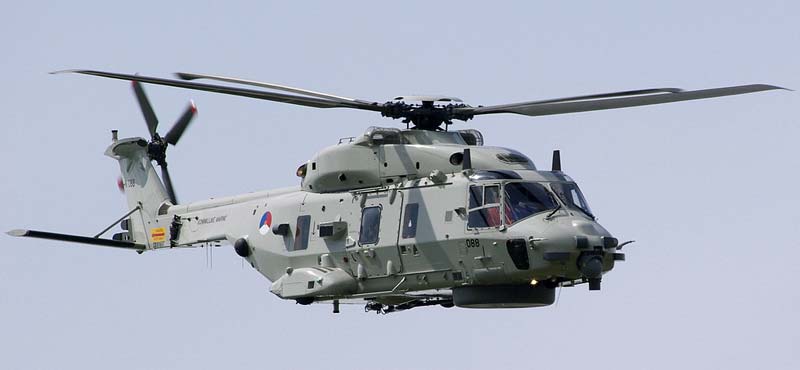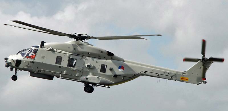 NH90 относится к вертолетам одновинтовой схемы. Он имеет четырехлопастные несущий и управляющий винты, трехстоечное убирающееся в полете колесное шасси и двухдвигательную силовую установку. В конструкции фюзеляжа обширно используются композиционные материалы, что позволило понизить массу вертолета на 20% по сопоставлению расчетной, а количество деталей – на 70% и уменьшили радиолокационную сигнатуру. Не считая того, для понижения заметности вертолета NH-90 в радиолокационном спектре электрических волн боковая поверхность фюзеляжа образована плоскими панелями, расположенными под углом друг к другу, что обеспечивает отражение радиолокационных сигналов ввысь либо вниз и резко понижает формирование потока электрической энергии, направленной на облучающую РЛС. Зависимо от предназначения вертолёта, в кабине экипажа оборудуется 2-4 рабочих места для членов экипажа. В транспортном варианте в грузовой кабине обеспечивается перевозка до 20 десантников с орудием либо до 2 т груза. При всем этом вертолет оборудуется задней грузовой рампой. В противолодочном варианте в грузовой кабине располагается особое оборудование и вооружение.