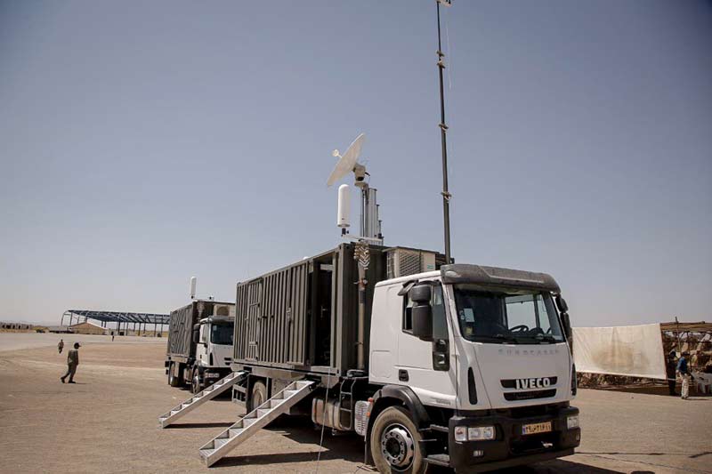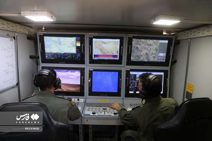 Снаружи машина образует очевидное (если не четкое, предположительно за счет итеративных доработок) соответствие другим иранским пт управления GCS как по сборке, так и по набору антенн. Его мобильной базой является окрашенный в защитный цвет грузовик Мерседес-бенз с белоснежной кабиной, с 2-мя дверями в кунге автомобиля, любая из которых ведет в отдельные диспетчерские пт контроля и управления БПЛА. Снаружи соответствующая белоснежная антенна, присутствующая на всех иранских GCS, является пожалуй более принципиальной точкой определения, а тарелка связи, по всей видимости нового типа. Несколько позднее в сети появились фото пт управления GCS на базе грузовика Iveco. На одном из фото на дисплее отображается вид с одной из камер FLIR дрона, а размещение и четкое отображение инфы практически схожи тем, которые известны для нынешних иранских БПЛА. Два индикатора, показывающие ориентацию автомобиля, идеально смешиваются вместе.