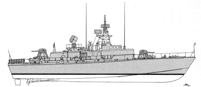 вооружение - 2 x 2 30-мм автомата АК-230 в обеспечении СУАО «Рысь» (МР-104), 4 х 1 трубчатых 533-мм торпедных аппарата ОТА-53-306 в обеспечении ПУТС «Баклан» и поисковой РЛС «Баклан» (МР-102), система опознавания «Нихром-М», аппаратура постановки дымовех завес;